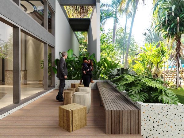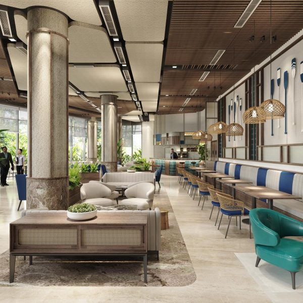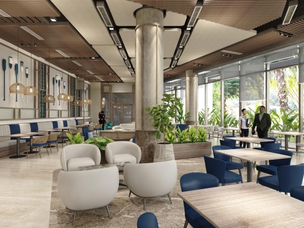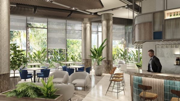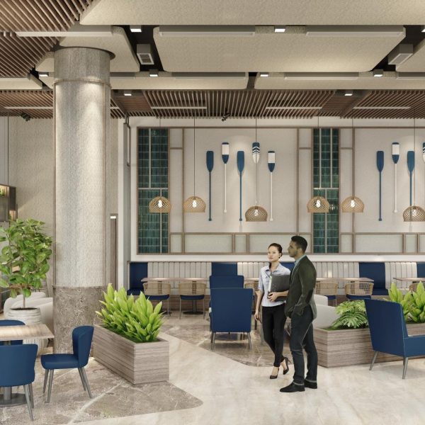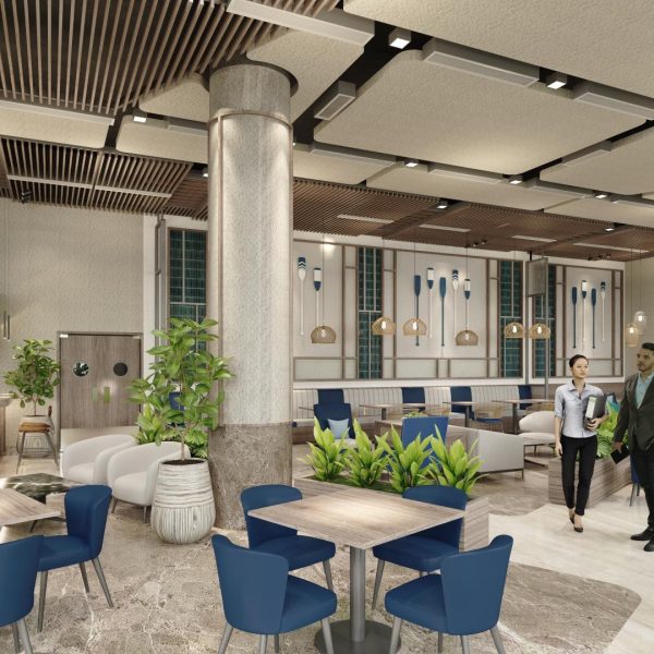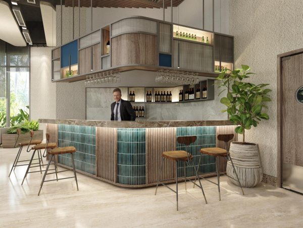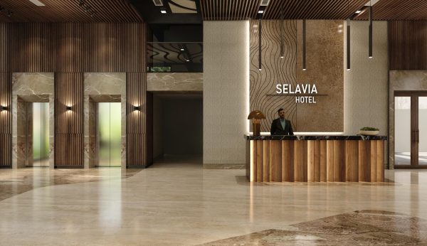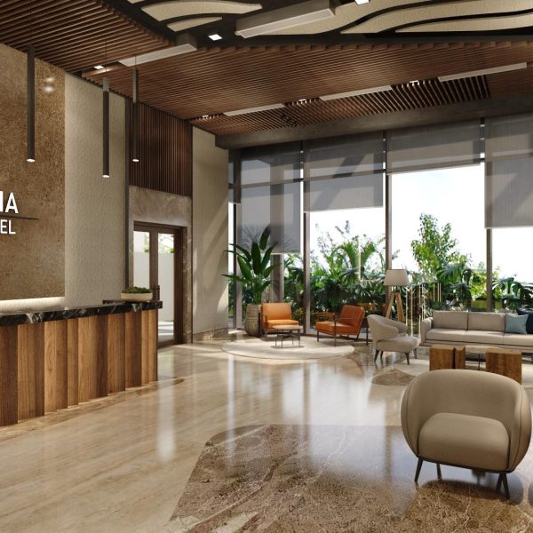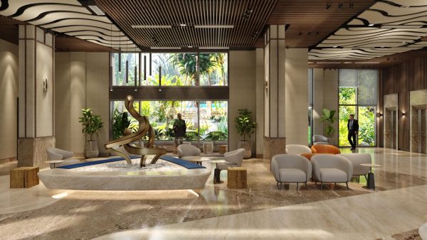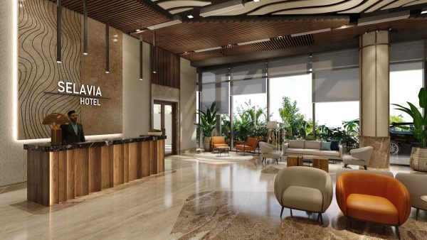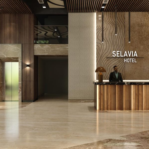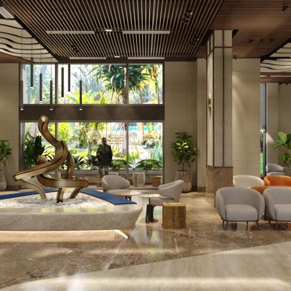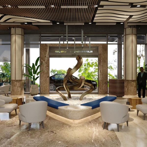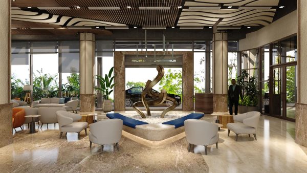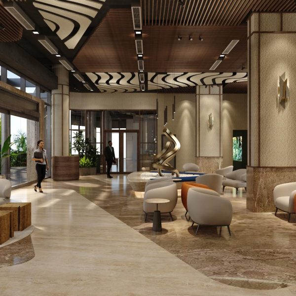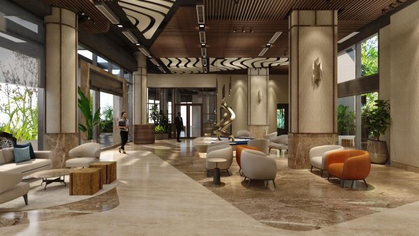Bên trong sảnh của khách sạn, bạn sẽ bắt gặp một không gian tinh tế và sang trọng, chứa đựng đầy đủ các yếu tố để tạo nên trải nghiệm đẳng cấp. Nền nhà sảnh được trải thảm sang trọng, tạo cảm giác ấm cúng và thân thiện. Ánh sáng nhẹ nhàng từ đèn trang trí làm nổi bật các chi tiết nghệ thuật và nội thất độc đáo. Nội thất được chọn lựa cẩn thận, với những chiếc sofa êm ái và bàn trà được đặt khéo léo để tạo nên không gian thoải mái cho du khách. Các tác phẩm nghệ thuật đương đại trang trí trên tường, cùng với cây xanh tạo điểm nhấn và làm tươi mới không khí. Tất cả những yếu tố này cùng nhau tạo nên không gian sảnh khách sạn sang trọng và ấn tượng.