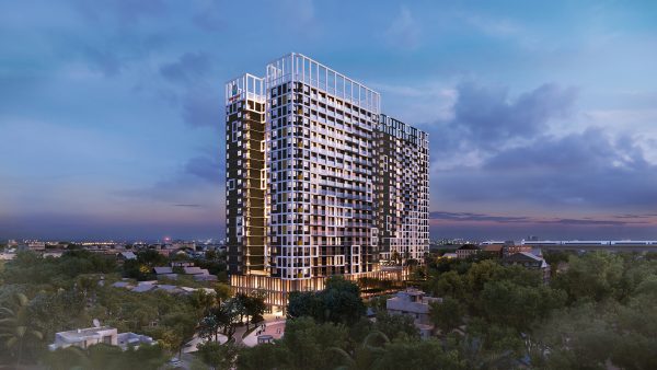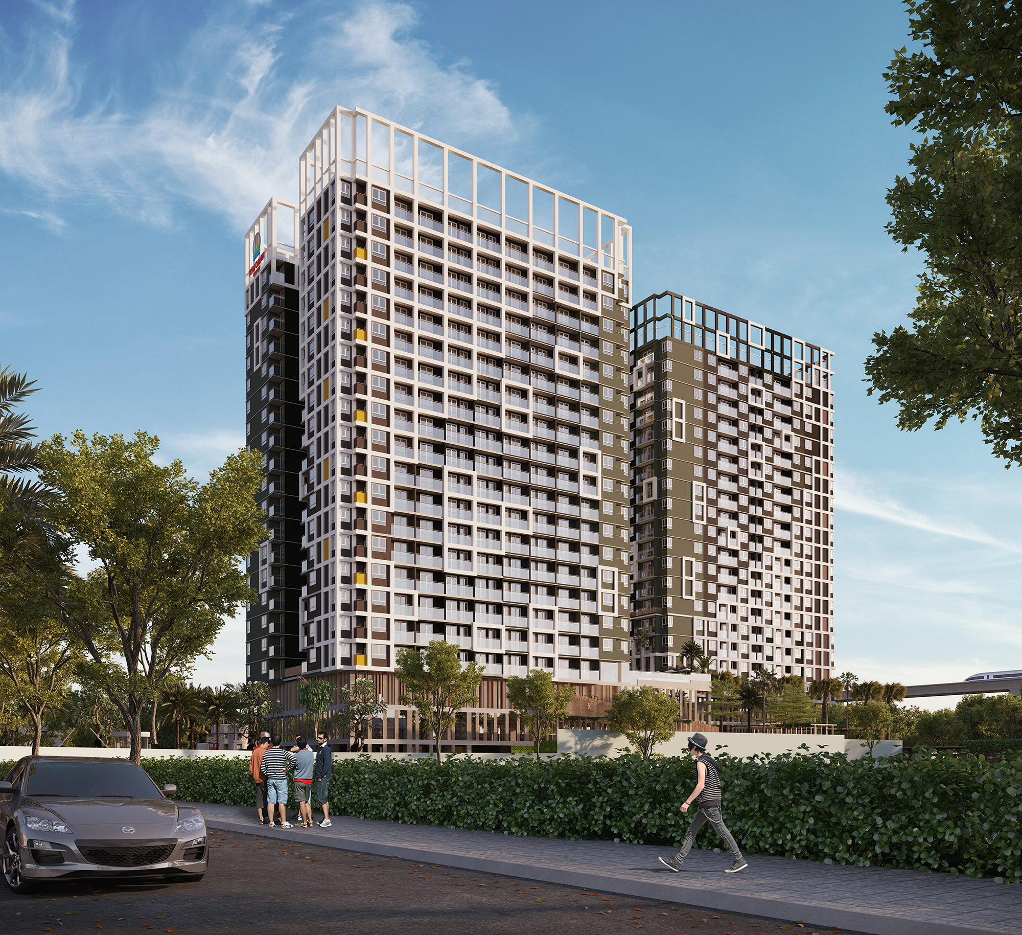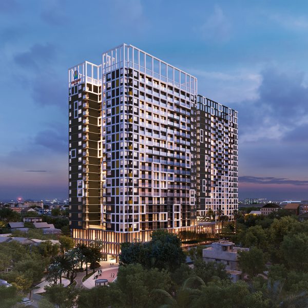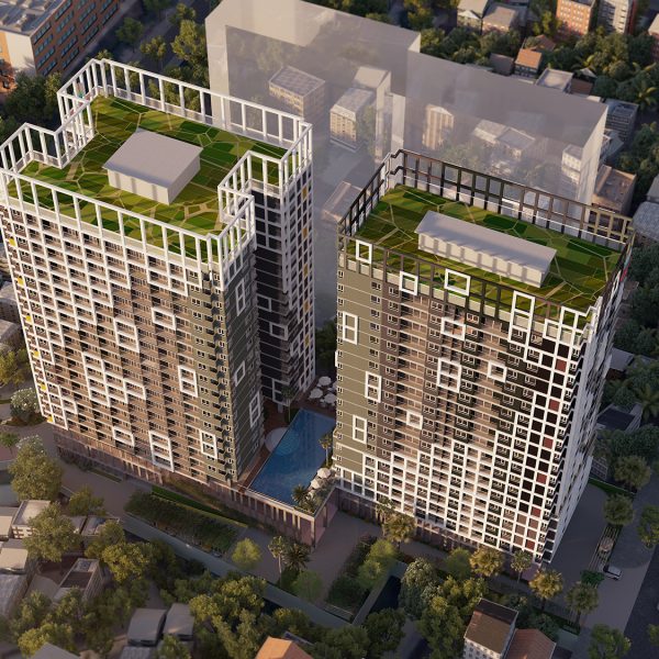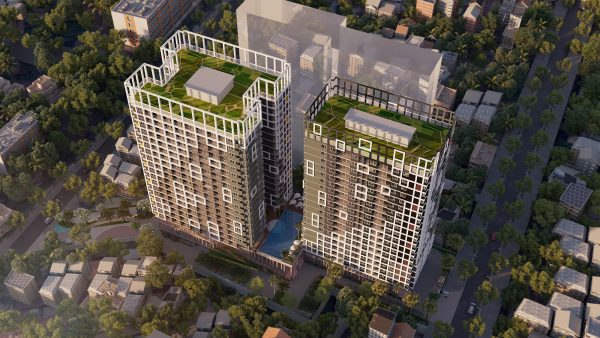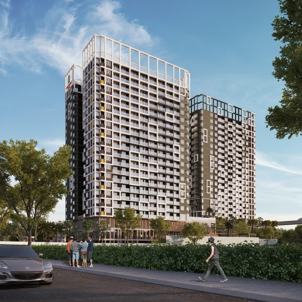 Developed for Kim Oanh Group in Binh Duong. Includes elevated parking, elevated swimming pool and commercial ground floor. Highlights of the design documents for adjustment, upgrading and continued development within the limited conditions of the current construction status and changes in design standards after the long period of pending construction: