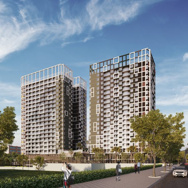 Được phát triển cho Kim Oanh Group tại Bình Dương. Bao gồm bãi đậu xe trên cao, hồ bơi trên cao và tầng trệt thương mại. Điểm nổi bật của hồ sơ thiết kế điều chỉnh, nâng cấp và phát triển tiếp tục trong điều kiện giới hạn của hiện trạng xây dựng và các thay đổi về quy chuẩn thiết kế sau thời gian dài dừng xây dựng: